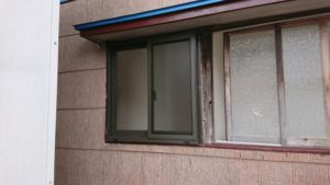 古い木製の窓で二つ、どちらも動きが悪く使いにくい窓でした。