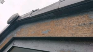 破風板にも塗装の剥がれが、酷く、質の良い材料を使っていたせいか、腐食はありませんでしたので、このまま塗装と判断させて頂きました。