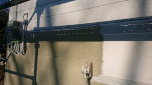 外壁の下地、シーラー処理の様子です。古い外壁の色が変わっているのがわかりますね。丁寧に丁寧に塗り込んでいきます。
