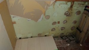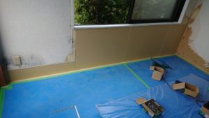 今回の工事もマンションの戸境の壁のカビがひどく壁の張り替え工事をさせて頂きました。