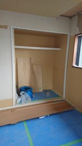 カビの酷かったクローゼットの中は全て、綺麗に石膏ボードを張り替えさせて頂きました。