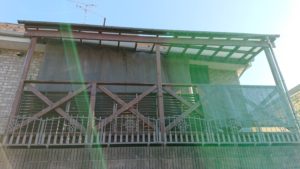 新築当初から取り付けられていたオシャレなデッキですが、良く見ると、台風で屋根が破損してしまい、ガタツキはありませんでしたが所々に腐食がありました。