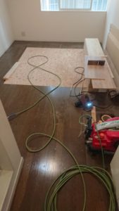 新しく構造用合板を張り、フローリング張りのスタートです。
