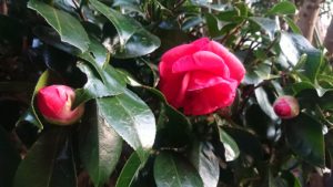 梅の花が散り初め、毎年、自宅の椿の花が、美しく春の香りを教えてくれます。