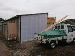 工場の一部をセットバックで切り離し、新たに、光が入る、乳白色のポリカネート波板で明るく仕上げさせて頂きました。