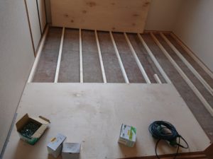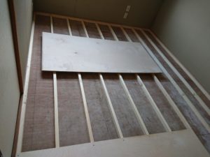 畳を綺麗に撤去して新たに根太組みを丁寧に丈夫に施工させて頂きました。
