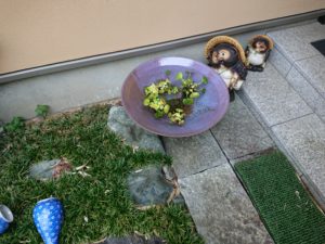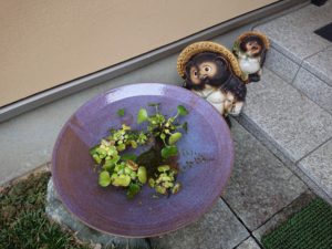 最初は小さな水鉢で飼育してましたが、色々調べて大きな水鉢をプレゼント。