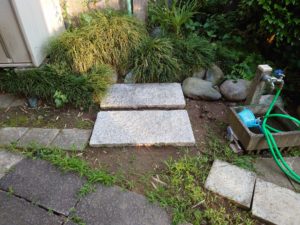 まずは設置場所の土台敷きです。御影石で丈夫に作りました。