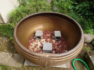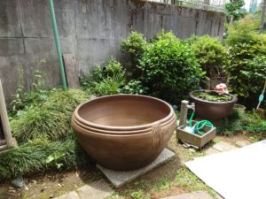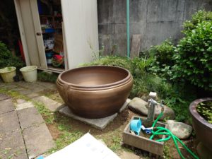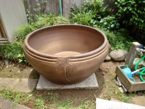 昨年から始めたメダカちゃん達が沢山増えましたので、伝統工芸、信楽焼の超巨大睡蓮鉢をプレゼント。