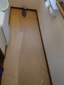 仕事納めにトイレの床貼り工事のご用命をいただきました。