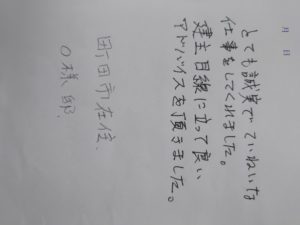 今回の投稿は、久しぶりに「お客様の声」をいただきました。