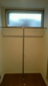 反対側にはスーツやロングコートなどが掛けられるハンガーパイプを取り付けさせて頂きました。