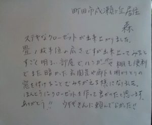 この度、森様から工事完成の感想文を頂戴させて頂きました。