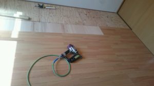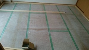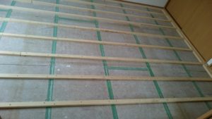 次に、畳の厚みが60㎜ありましたので、床をバリアフリーにするための調整兼、ネダ組みの施工の様子です。